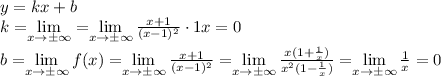 Y=(x+1)/((x-1)^2) 1)исследовать на четность/нечетность 2)указать промежутки монотонности функции и найти точки экстремумов 3)найти уравнения вертикальных и наклонных ассимптот, используя условия для существования этих ассимптот. построить эти линии на координатной плоскости 4)исследовать поведение функции на концах области определения-
