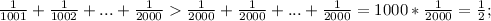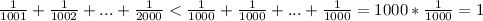 Докажите что 1/2<1/1001+1/1002+...+1/2000<1