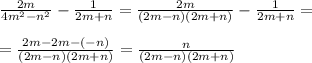 Упростите выражение 2m дробная черта 4m^2-n^2 - 1 др. черта 2m+n-