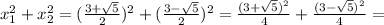 x х²(в квадрате)1+х²2=(x1+x2)^2-2*x1*x2=3^2-2*1=9-2=7