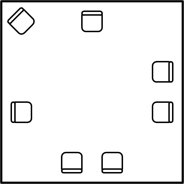 расставь семь стульев у 4 стен комнаты, так чтобы у каждой стены их было поровну.