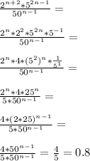 Сократить дробь 2 в степени n+2 * 5 в степени 2n-1 / 50 в степени n-1 (это дробь)