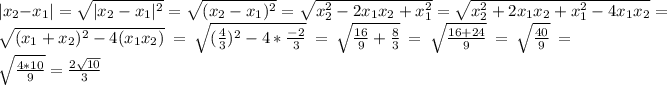 Х1 та х2 - корені рівняння 3х"- 4х-2=0 Не розв"язуючи рівняння знайти значення виразу |x2-x1|-