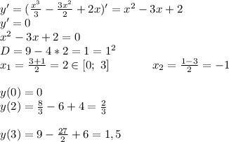 . Для этого приравняем производную к нулю. Причем нас интересуют только нули, которые находятся внутри данного промежутка.