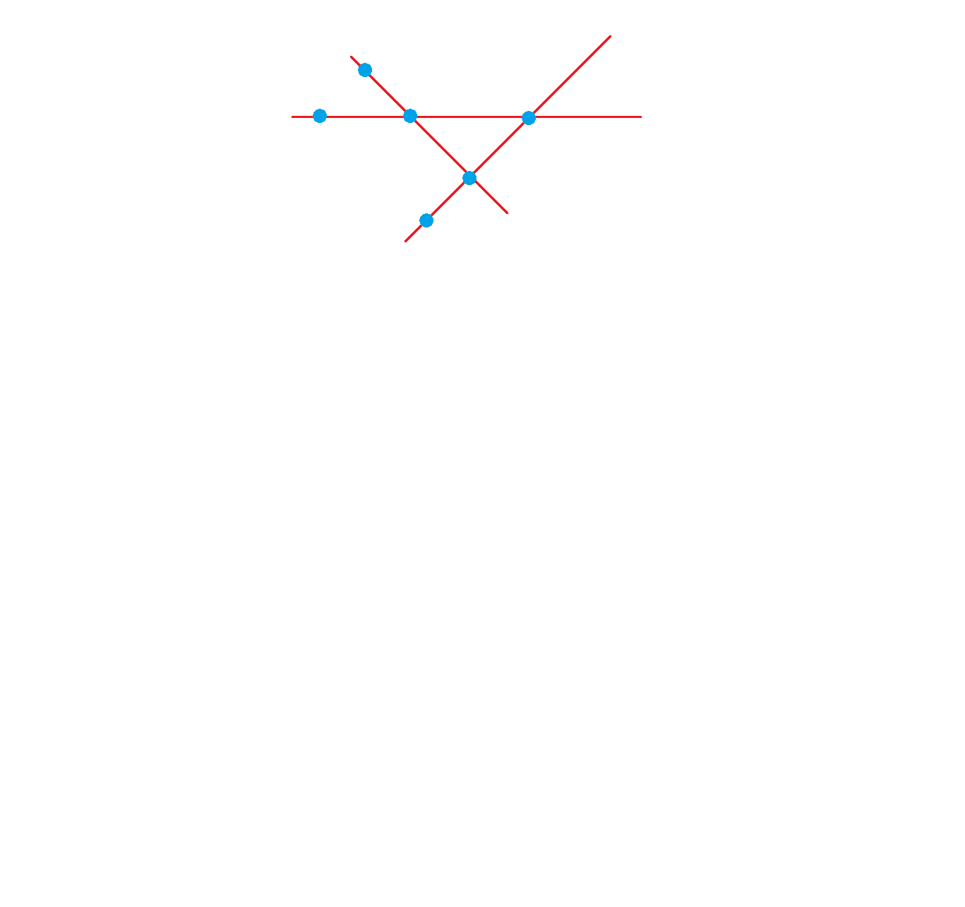 начерти 3 прямые так чтобы они пересекались в 3-х точках и на кажной нарисуй ещё по 3 точки.