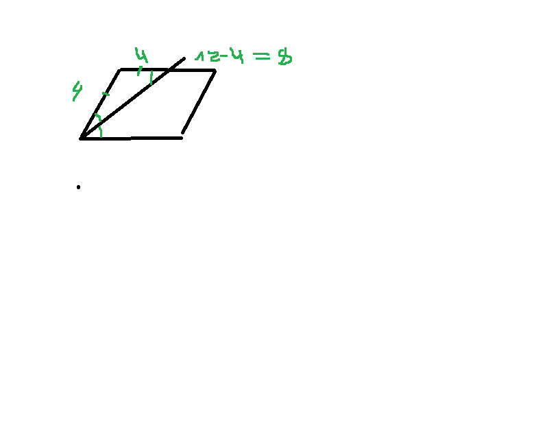 стороны параллелограмма 4 и 12 на какие отрезки разделит биссектриса острого угла большую сторону параллелограмма?