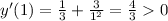 y'=1/3+3/x^2=(x^2+9)/x^2>0