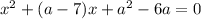 найдите все значения параметра a,при которых число 1 заключено межу корнями уравнения x^2+(a-7)x+a^2-6a=0
