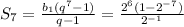 1,2,4,8,16,32,64 Вот сама прогрессия Ответ:127