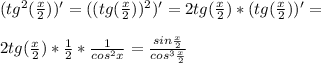 y'=(tg²(x/2))'=2*(1/2)*tg(x/2)/cos²(x/2)=tg(x/2)/cos²(x/2)=sin(x/2)/cos³(x/2).