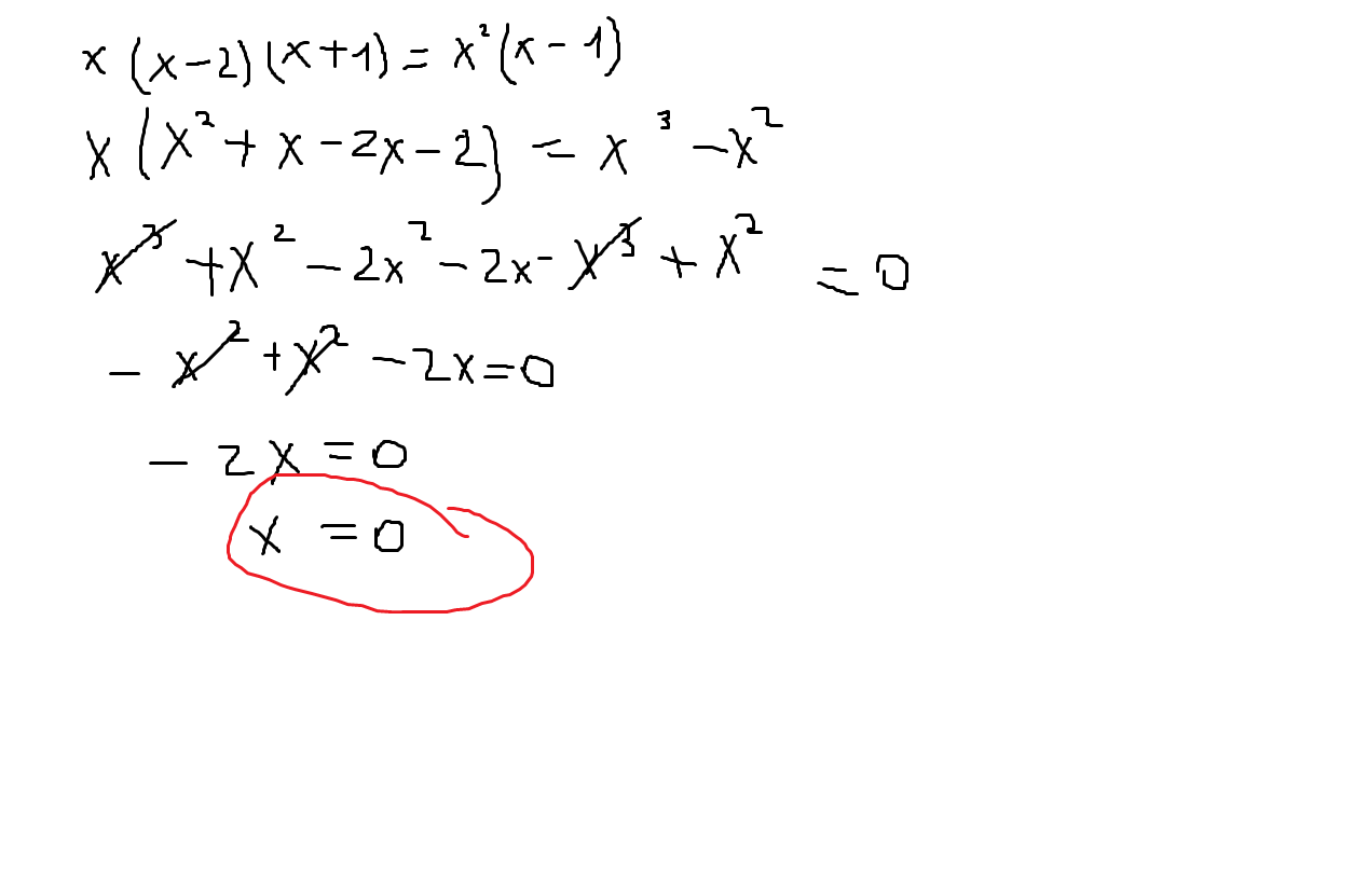 Формулы сокращенного умножения. Решите уравнение: x(x-2)(x+1)=x^2(x-1)