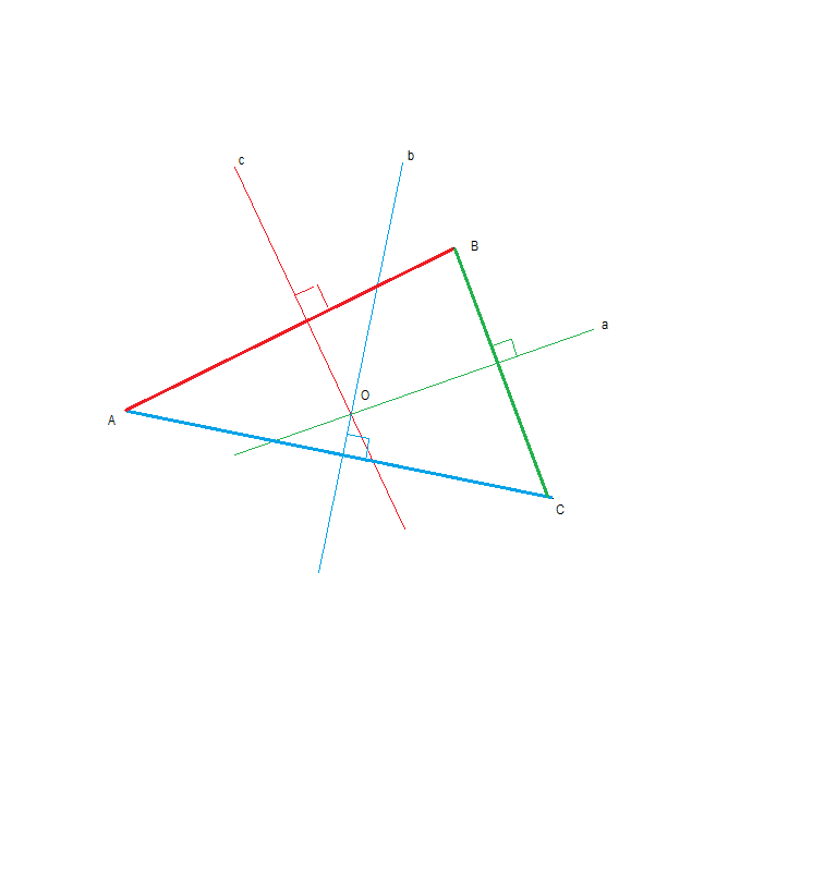 точка пересечения перпендикуляров О - равноудалена от всех вершин