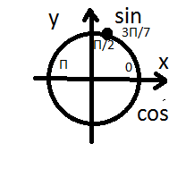 Я для сравнени начертил бы окружность и отметил на ней эту точку (3П/7).