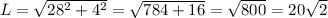 Длина диагонали осевого сечения, обозначим как L, равна
