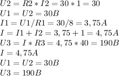Определите напряжение U0 на участке A В цепи, схема которой изображена на рисунке 40, если сопротивления ламп R1 = 8,0 Ом, R2 = 30 Ом, R3 = 40 Ом, а идеальный и амперметр показывает силу тока I2 = 1,0А. Определите силу тока и напряжение на каждой лампе. схема в вложении рис.40