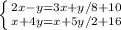 2x-y=3x+ y/8 +10,x+ 4 y=x +5y/2+ 16.