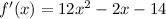 Найдите f(0), если f '(x)=12x^2-2x-14 и f(2)=5