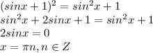 (sinx+1)^2=sin^2x+1