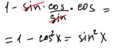 1-sin*cos/sin*cos= 1-cos^2=sin^2 -