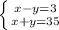 x + y = 35, x - y = 3 ==> (x, y) = (19, 16)