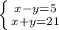 x + y = 21, x - y = 5 ==> (x, y) = (13, 8)