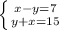 x + y = 15, x - y = 7 ==> (x, y) = (11, 4). -