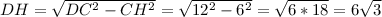 Пусть Н-прекция точки D на плоскость. Из прямоугольного треугольника DHC по теореме Пифагора