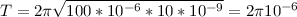 чему равен период колебаний в колебательном контуре,состоящем из конденсатора емкостью С=100 мкФ и катушки индуктивности L =10 нГн