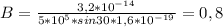 В однородное магнитное поле, влетает протон со скоростью 5*10^5 м/с под углом 30 градусов к силовым линиям.Определите величину вектора магнитной индукции,если магнитное поле действует на протон с силой 3.2*10^-14 H