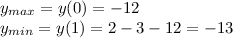 у = 2х^3 - 3х^2 - 12 [-2; 5]