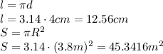 Найди площадь круга , если его радиус равен 3,8 м.-