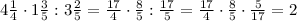 4целых 1/4 * 1 целую 3/5 : 3 целых 2/5