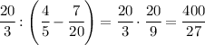 6 целых 2/3 : ( 4/5-7/20)-