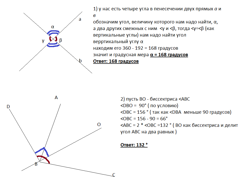 2)Через вершину угла АВС проведена прямая ВД перпендикулярно биссектрисе этого угла. Найти величину угла АВС, если прямая ВД образует с одной из сторон угла АВС угол, величина которого равна 156гр.-