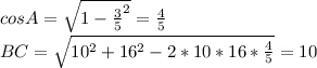 Naydite BC v ostrougolnom treugolnoke ABC esli AB=10 sm AC=16 sm sin<A=3/5