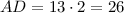 ABCD - трапеция. Основание трапеции AD равно диаметру описанной окружности, AO=OD=13 см