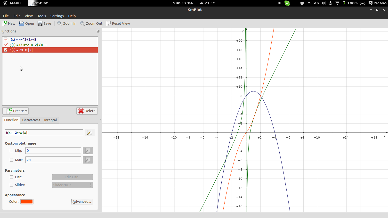 Построить график функции, построить её модуль и функцию от модуля.