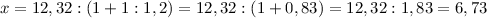 Уравнение x+(x:1,2)=12,32-
