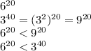 Что больше 6 в 20 степени или 3 в 40 степени.Объясните-