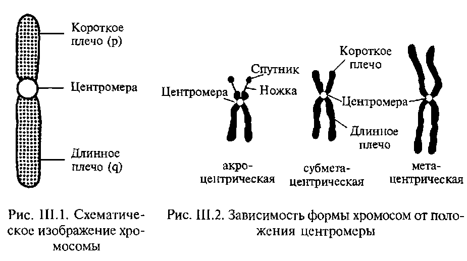 В зависимости от расположения центромеры различают ТРИ типа строения хромосом:акроцентрические хромосомы, у которых центромера находится практически на конце, и второе плечо настолько мало, что его может быть не видносубметацентрические хромосомы с плечами неравной длины;метацентрические хромосомы, у которых центромера расположена посередине или почти посерединеНО если ты учишься не в мед. колледже, то это просто ОДНОплечие РАЗНОплечие и РАВНОплечие хромосомы