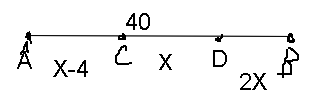 Длина отрезка ав=40см точки сд делят отрезок ав на отрезки ас сд дв длина отрезка сд на 4 см больше чем длина отрезка ас но в 2 раза меньше чемдлина отрезка дв найти длину отрезка ас-