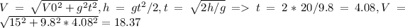 Тело брошено с высоты 20 метров горизонтально со скоростью 15 м/с