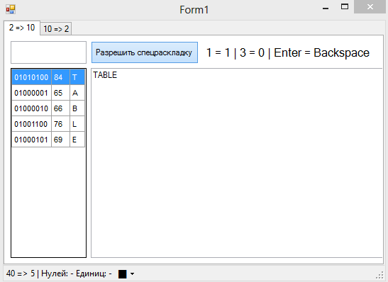 Пользуясь фрагментом таблицы кодировки ascii, декодируйте текст: 01010100 01000001 01000010 01001100 01000101-