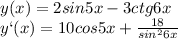 Производная функции y(x) 2sin 5x-3ctg 6x равна: