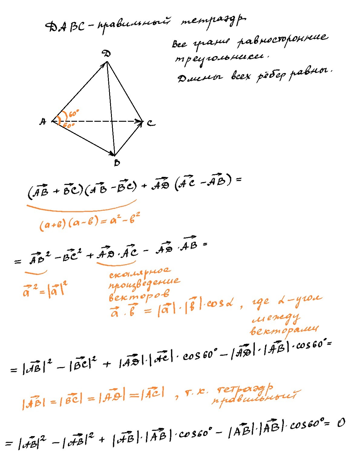 DABC - правильный тетраэдр. Упростите выражение: (AB+BC)(AB-BC)+AD(AC-AB)