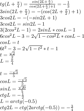 Если tg(L+пи/4)=-1/3.Найдите значение ctg2L.Помогите пожалуйста.-