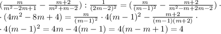 =[m/(m-1)^2 - (m+2)/(m+2)(m-1)]*4(m-1)^2/[((m-1)^2) *(m+2)]=
