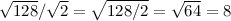1) √ 128 / √ 2 = √ (128 / 2) = √ 64 = 8