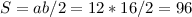 Тогда sin α = √ (1 - 0,6²) = 0,8 , a S = 20 * 12 * 0,8 / 2 = 96 см²