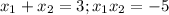 применим теорему Виета имеем x1x2=-5 x1+x2=3